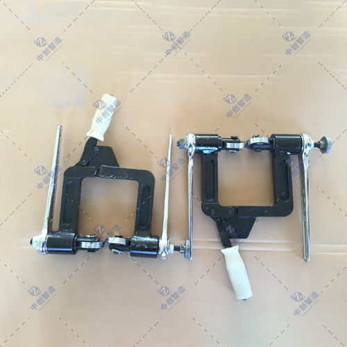 當前位置:網站首頁 >> 鐵路工具 DJQ-Ⅱ型雙邊倒角器是用于對鐵路鋼軌軌腰上的孔進行倒角。雙邊倒角器其結構:它有一個門形框架,由左支架和右支架通過一套四連桿機構鉸鏈而成,鎖緊桿上端裝有手柄,左支架下端的軸套中裝左軸,左軸右端裝有圓盤狀刀片,左軸左端裝有棘輪扳手,右支架下端的軸套中裝有右軸,右軸上套裝一個壓緊彈簧,右軸左端裝有圓盤刀片,右軸右端裝有棘輪扳手。雙邊倒角器結構簡單,使用方便,工作效率高,其刀片呈圓盤狀,整個圓周上的刀刃鋒利耐磨,使用壽命長等優點。