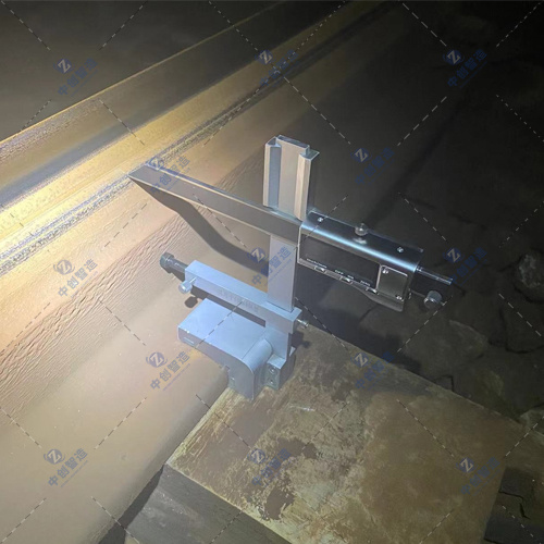 根據所測對象選擇不同的測量尺。使用時,將該尺的尺座吸附在尖軌軌底上面,中間支撐吸附在軌腰上,開啟測量表,按動藍色功能鍵至公制顯示數字,推動測量橫尺至尖軌作用邊上,讀取測量表數據,將量取數據記入統計表內,然后拿下測量尺轉移到下一個測點上,以此類推,完成一根尖軌的測量。