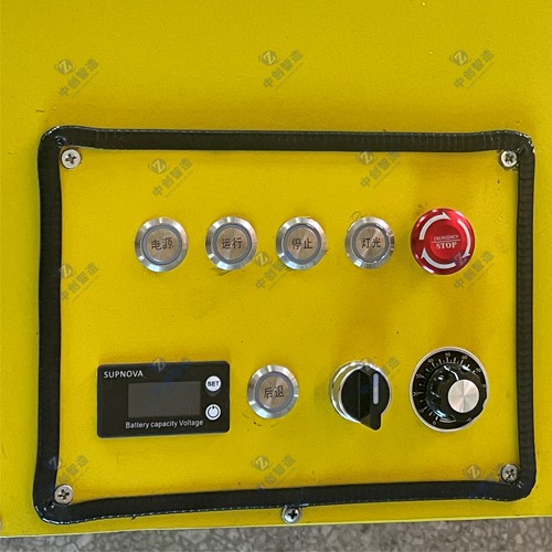 3. 為了方便夜間作業還設置了照明裝置,按下燈光按鈕即可,本機還設置了急停按鍵,發生緊急事情按下急停按鈕,直接下道