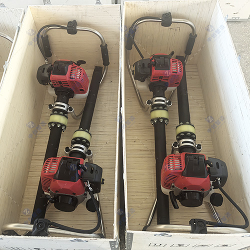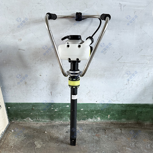 1、手持搗固鎬手把,將汽油機油門開至適當位置,反復插入道床石碴中進行搗固作業。